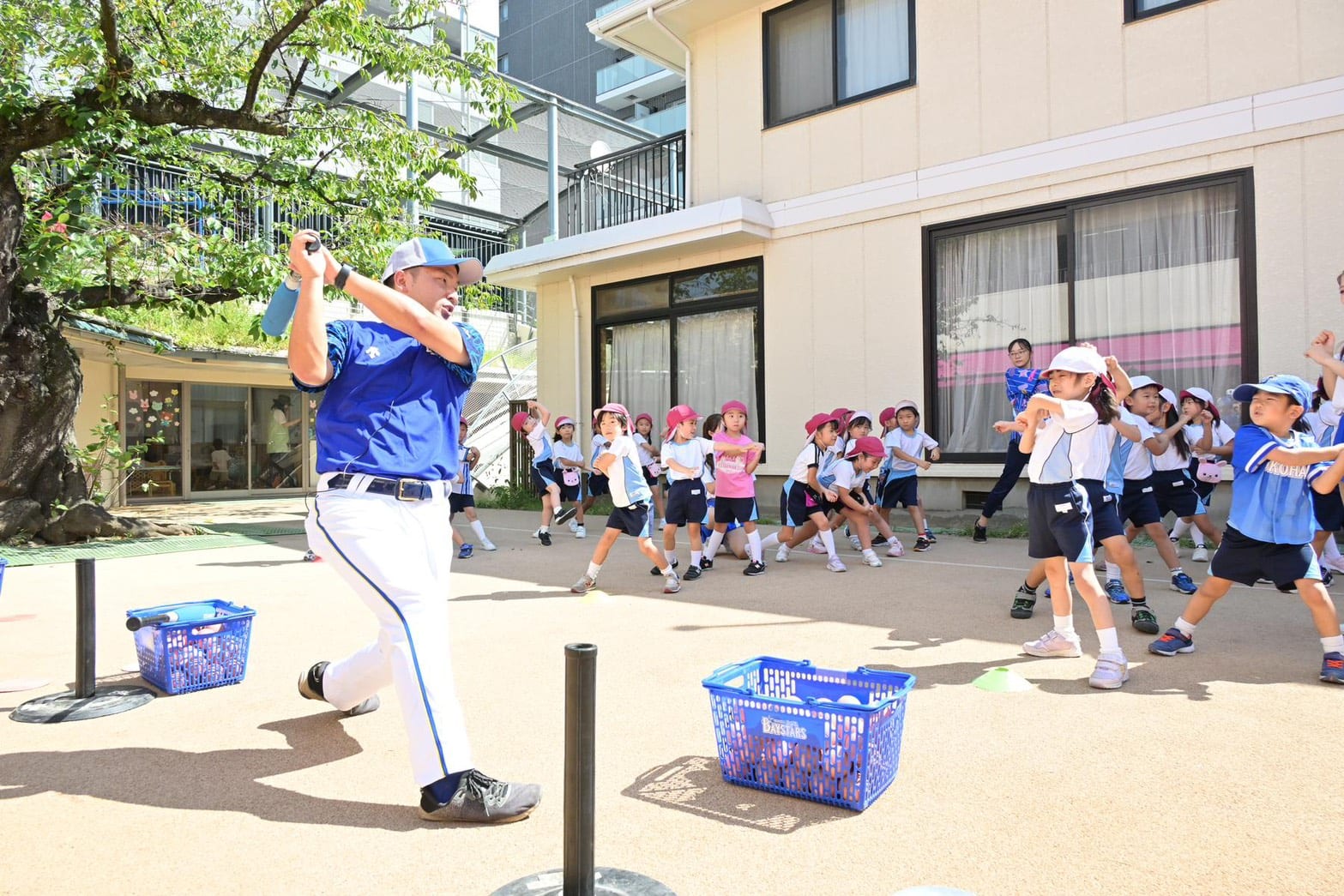 今年度より、横浜DeNAベイスターズの野球ふれあい訪問に野球インストラクターとして講師を派遣しております。