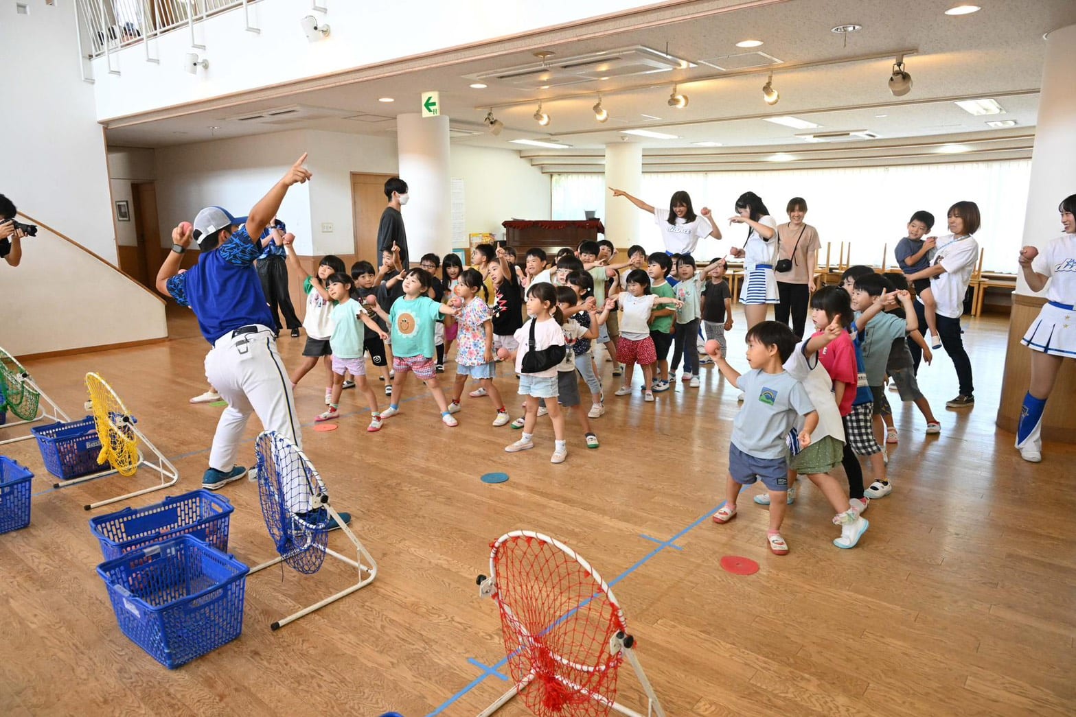 ベイスターズが掲げるBみらいアクションにおける野球ふれあい訪問は、横浜市および横須賀市の幼稚園や保育園へ、球団マスコットのDB.スターマンと公式パフォーマンスチームdianaと共に訪問し、小さな子どもたちに野球の楽しさを知り、興味をもってもらうための活動です。